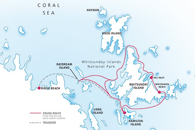 Der kilometerlange Whitehaven Beach auf Whitsunday Island in der Insel Gruppe der Whitsundays gehört mit zu den schönsten Stränden der Welt. Der schneeweiße Sand "quietscht" ein wenig, wenn Sie barfuß auf ihm Laufen. Am spektakulärsten im Verlauf dieser Tagestour ist der Ausblick den Sie nach einer kleinen Wanderung von einem Aussichtspunkt auf das sogenannte "Hill Inlet" genießen können. Der Ausblick auf die in allen Blautönen schillernde Lagune ist im wahrsten Sinne des Wortes "atemberaubend" und ein Highlight für jeden Fotografen.